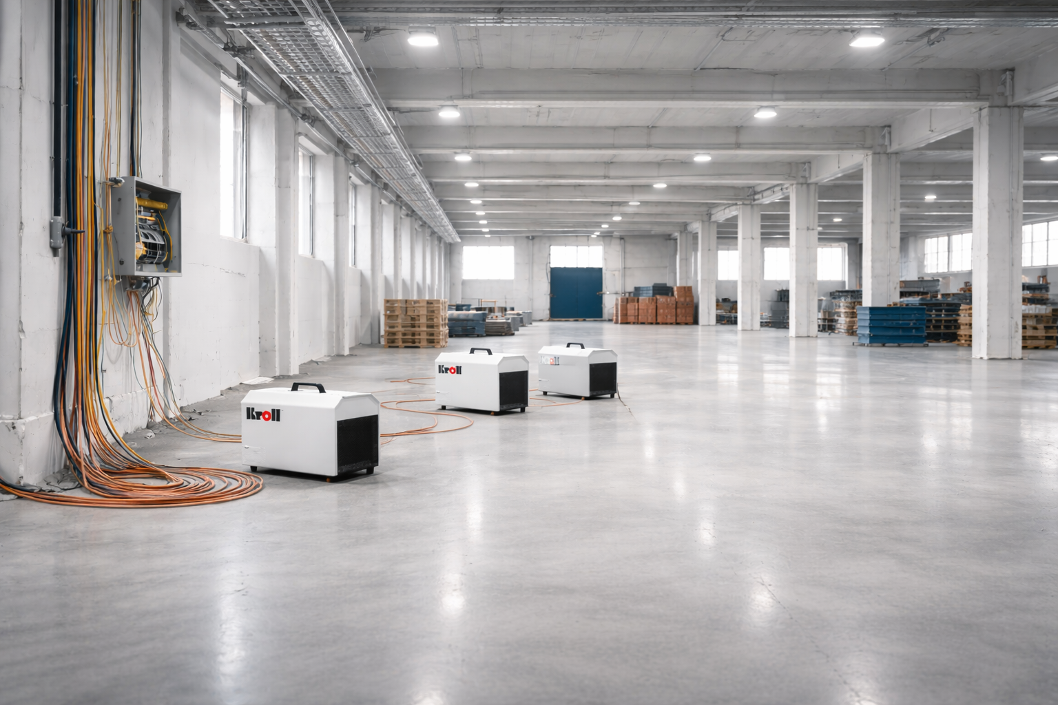 Schnelle und gleichmäßige Trocknung: Optimal für Estrich-, Putz- und Innenausbauarbeiten.